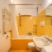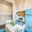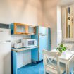 Completa l'appartamento una cucina con angolo cottura, forno a microonde e lavatrice, due bagni, uno con vasca ed uno con doccia e bidet.