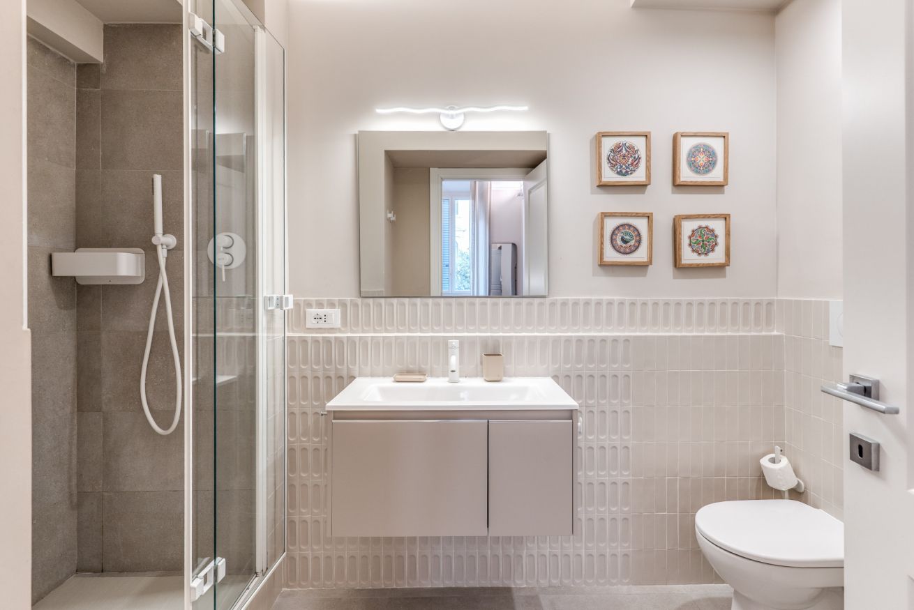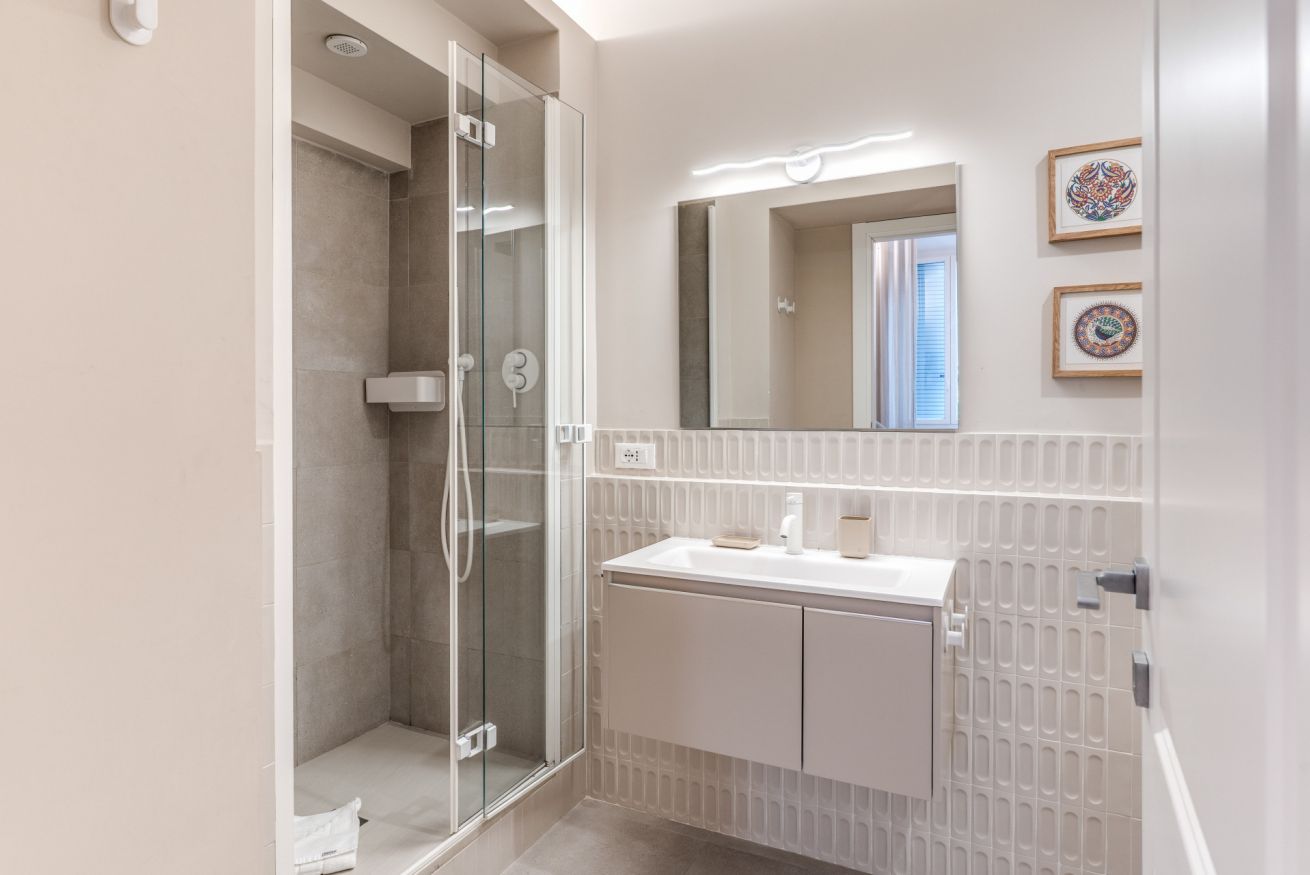l'appartamento, appena ristrutturato, è composto da 2 comode camere da letto entrambe con bagno completo en suite.