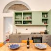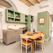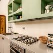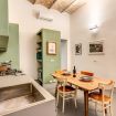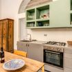 Cucina completamente attrezzata con zona pranzo e accesso esclusivo al patio privato.