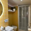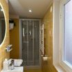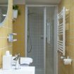 Il luminoso bagno è dotato di lavabo, WC, bidet e una comoda doccia.